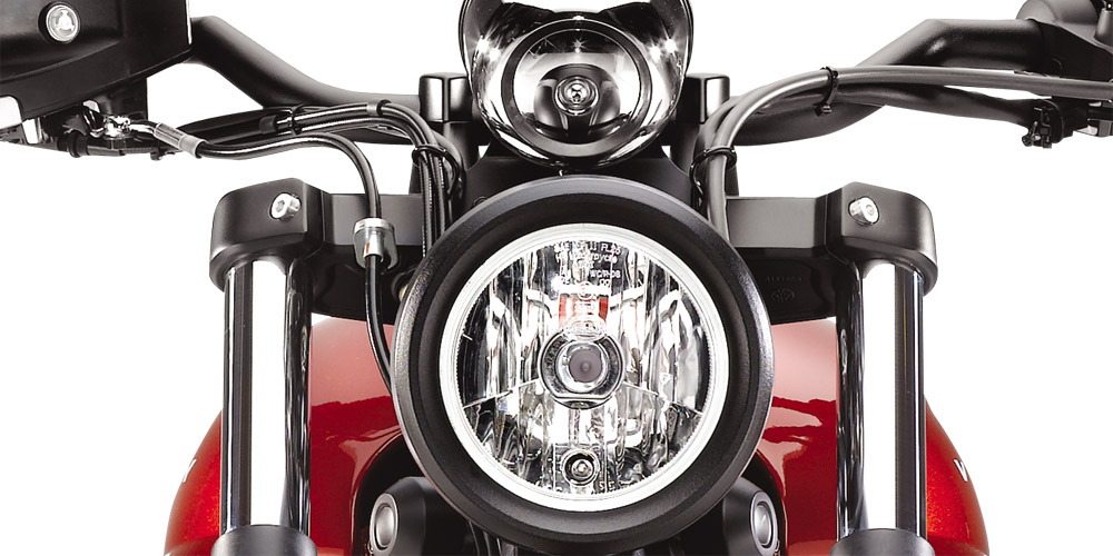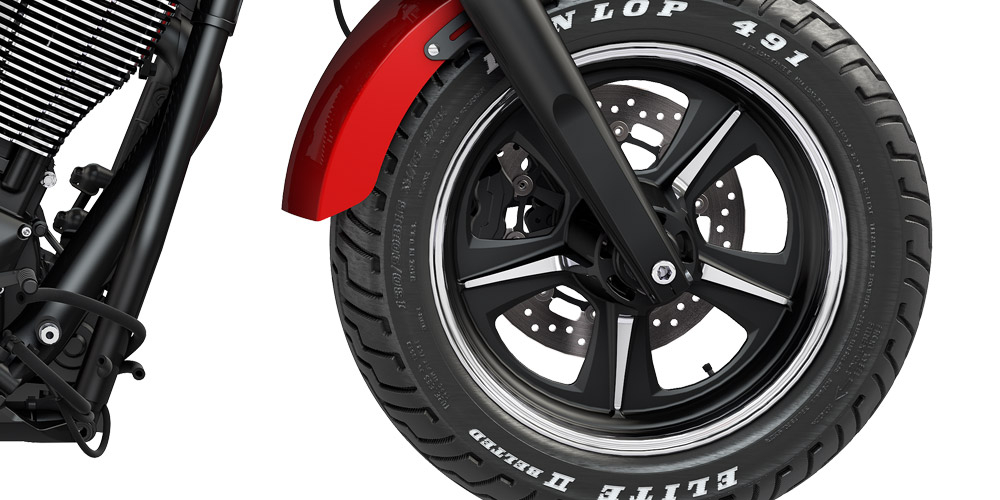 La Victory Judge combine les technologies les plus modernes avec l’American Style des Muscle Cars venus du fond des années 60. Les roues de 16 avec les pneus Dunlop à lettrage blanc soulignent ce parfait look de Muscle Cruiser.
